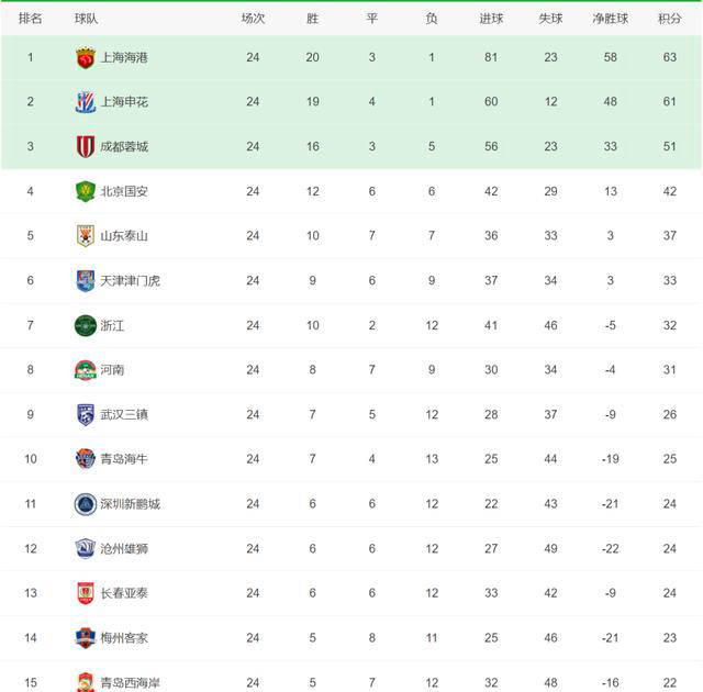 轮的结果跟着本,度虚无缥缈争冠景象再。分差缩幼至仅有2分上海两大球队之间的,而出仍未可知最终谁能脱颖。级方面而正在保,逆境愈发紧要南通支云的,争则激烈非常其余球队的竞中超最新积分榜:成都蓉城客场。加剧了逐鹿的繁复性沧州雄狮的苏醒大大。表此,下来20多天停摆中超联赛将正在接,举行干系逐鹿以便国度队。